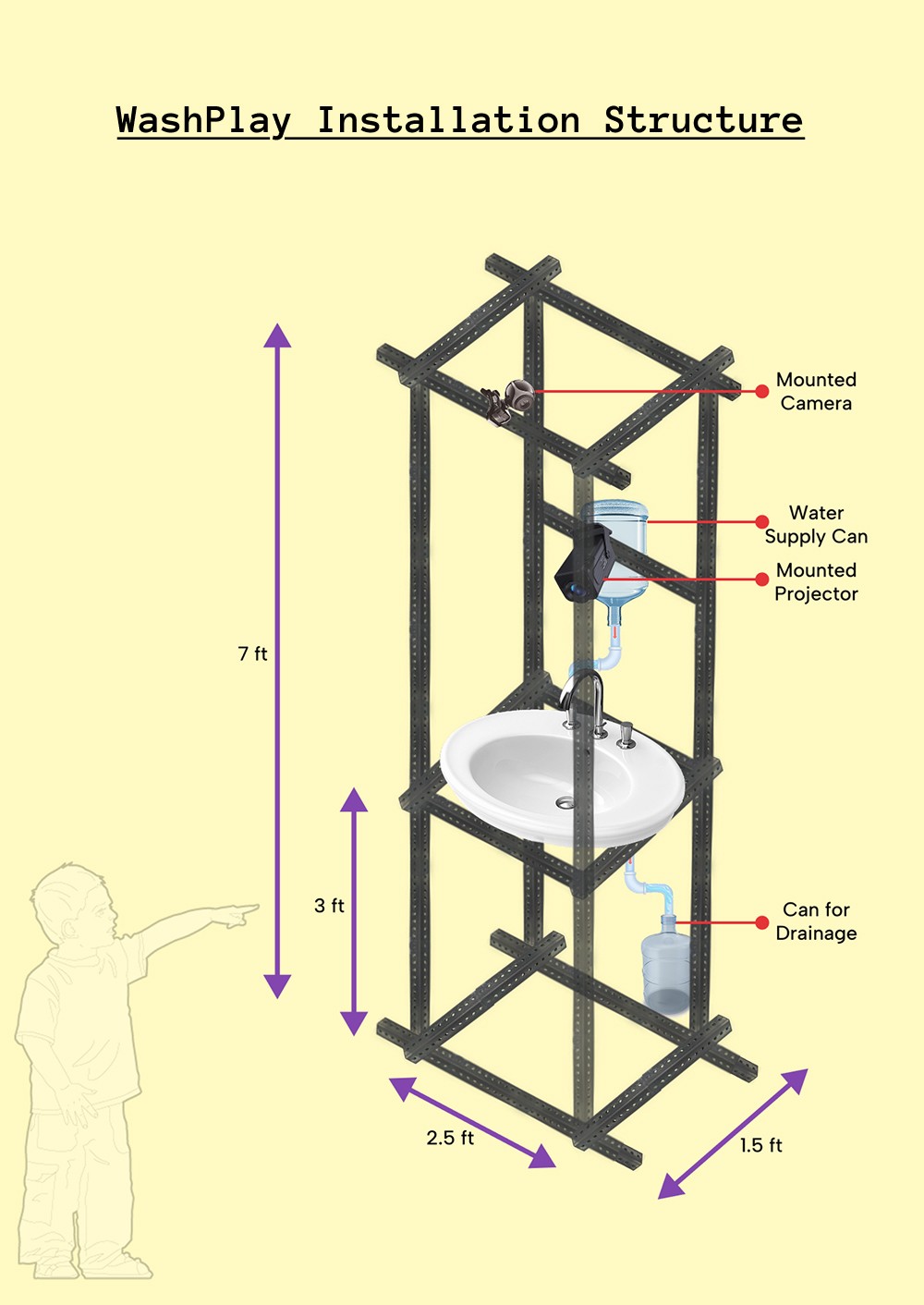 WashPlay is an interactive projection mapping installation that transforms the everyday act of hand washing into an immersive visual spectacle. Aimed at children aged 8–13, the installation addresses a key gap in hygiene education: while children are often taught about germs and bacteria, they rarely see the direct impact of healthy habits like proper hand washing.